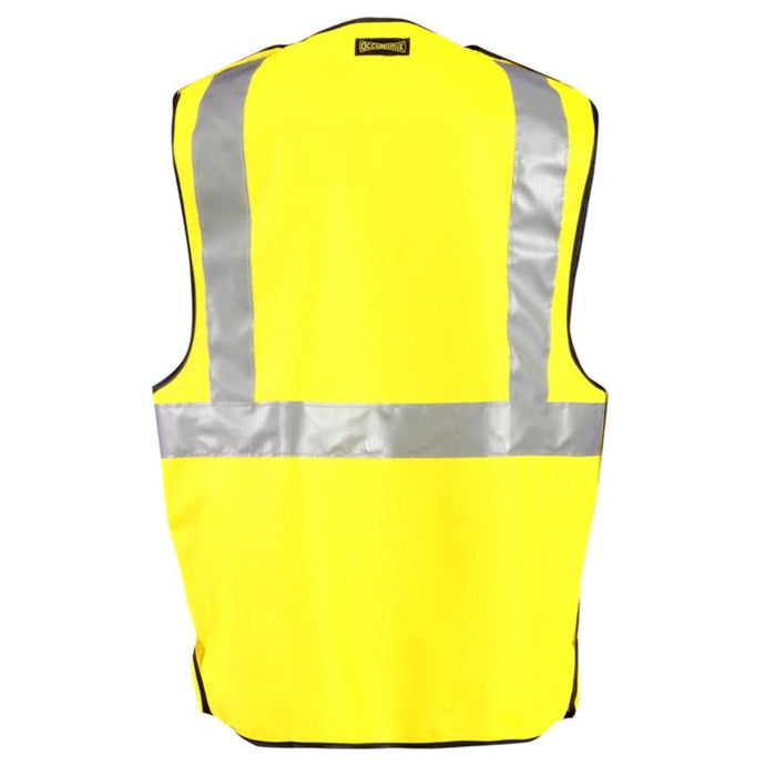 The Premium Flame Resistant 5-Point Break Away Solid Vest from Occunomix is designed for use in hazardous work environments. Made from lightweight, flame-resistant fabric, this vest meets NFPA 70E and ASTM 1506 standards to protect you from flash fire and flame hazards. The five-point breakaway design ensures that the vest remains secure while allowing for easy removal in emergency situations. The high visibility color and 2" reflective tape keep you visible in low-light conditions. This vest is great for anyone working in hazardous environments.