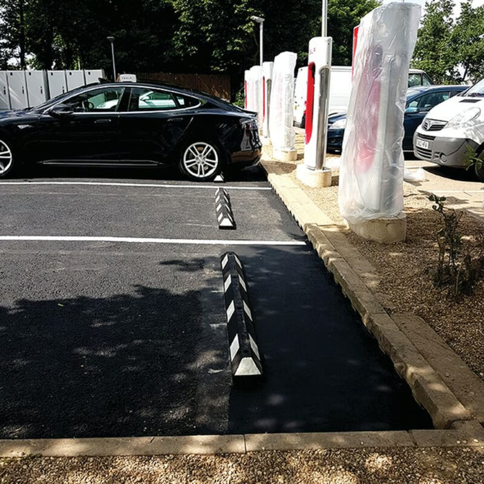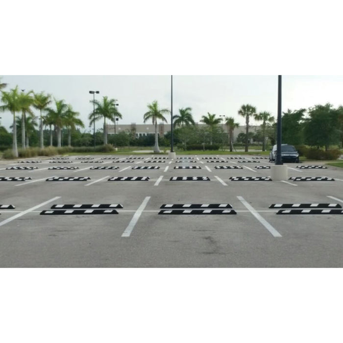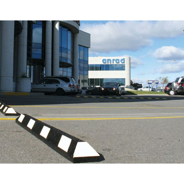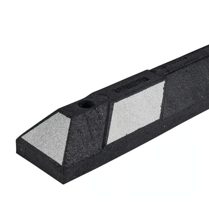 - Parking stop is made with corrosion resistant recycled rubber for long lasting durability and dependability