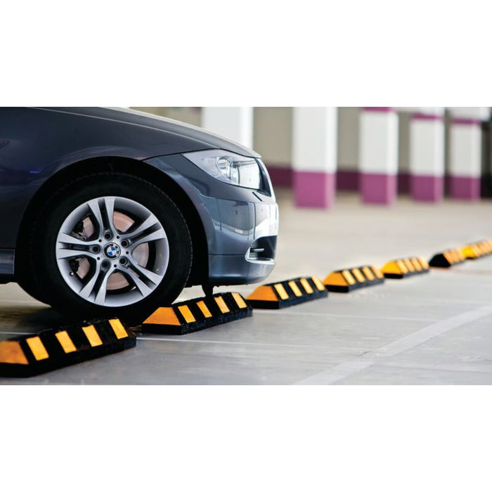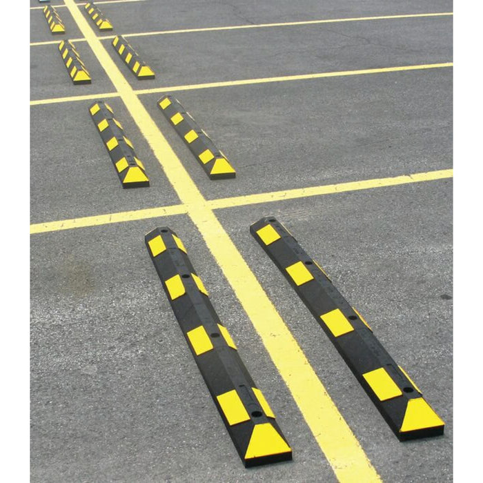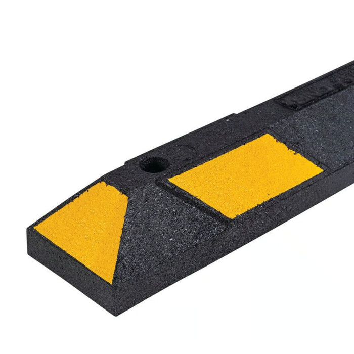 - Parking stop is made with corrosion resistant recycled rubber for long lasting durability and dependability