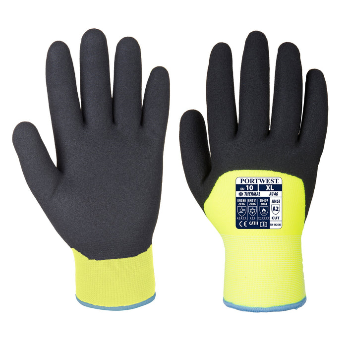 The Portwest A146 Winter Grip Gloves Nitrile is a part of the Thermal Protection range. These grip gloves use twin liners to trap and retain heat making them suitable and specially designed for cold weather conditions. These thermal gloves also use a sandy nitrile coating that offers enhanced grip in both wet and dry conditions.