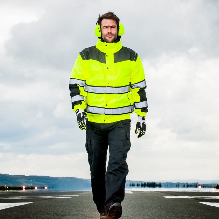 PORTWEST® Hi Vis Waterproof Winter Bomber Jacket With Detachable Sleeves - ANSI Class 3 - UC466