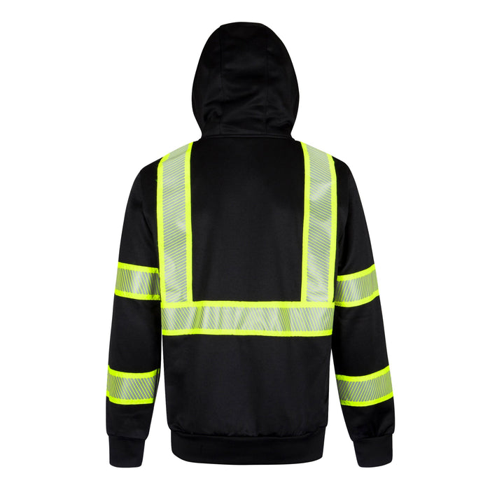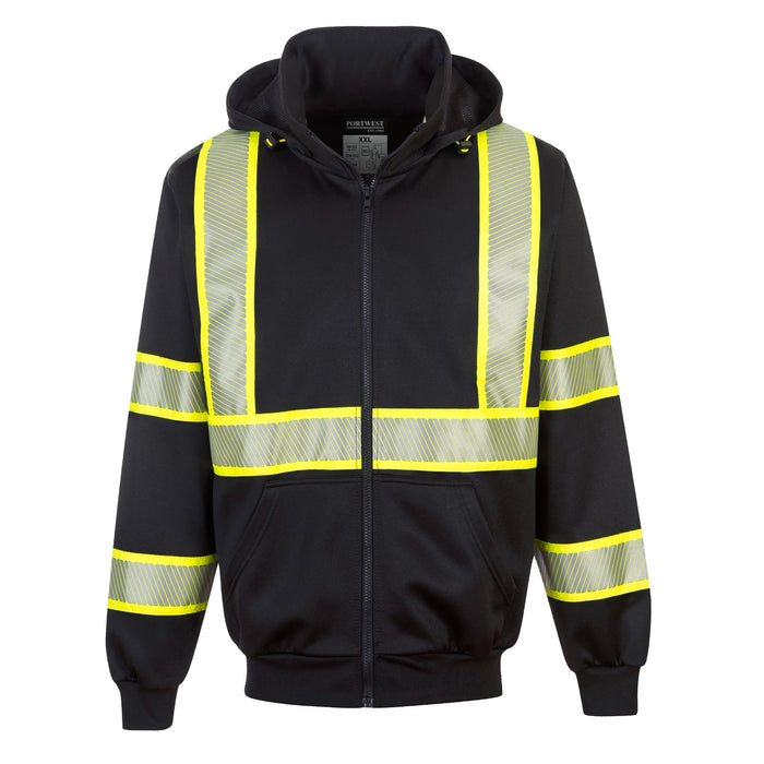 The Portwest F143 Iona Plus Zipped Hoodie is a part of Portwest line of new Iona products. Products are designed to offer enhanced user visibility with lightweight flexible HiVisTex Pro segmented reflective tape and contrast fluorescent trim. A selection of complementary designs and advanced construction techniques have been used, guaranteeing flexibility and ultimate wearer durability. This sweatshirt is lined with heat-applied 2" silver HiVisTex Pro reflective tape with contrast material on the torso for enhanced visibility.