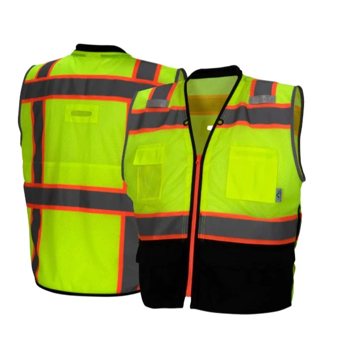 Pyramex® Lightweight Black Bottom Surveyor Safety Vest - Type R ANSI Class 2 - RVZ46B