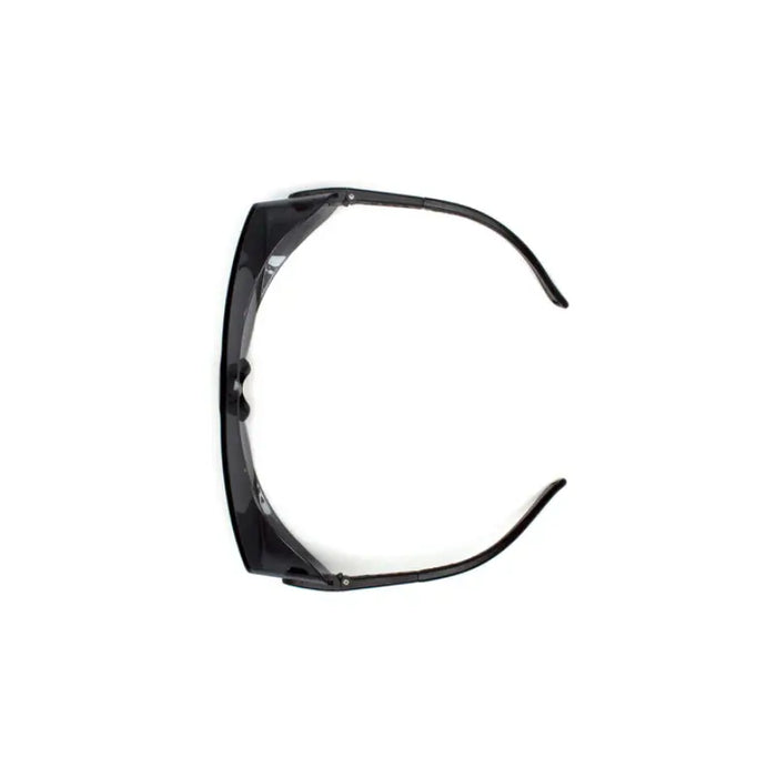 These safety glasses are designed to fit over most prescription glasses, accommodating frames up to 151mm x 49mm. Lightweight nylon temples adjust for length and pitch for a comfortable fit. Certified to ANSI/ISEA Z87.1+ High Impact, CAN/CSA Z94.3, CE, and UKCA standards, they provide reliable protection. Custom imprinting is available for personalization.