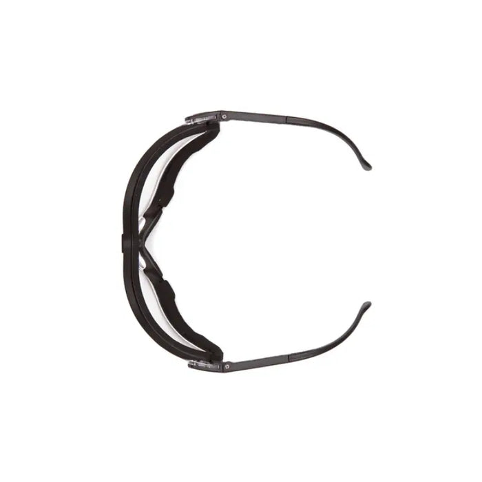 The V2G safety glasses feature vented lenses and frames for airflow, with adjustable ratcheting headband and temples for a perfect fit. Interchangeable temples and headband enhance versatility, while flame-resistant foam padding and a 9.75 base curved lens provide full side protection. Scratch-resistant polycarbonate lenses offer 99% UVA/B/C protection. Custom imprinting available. Certified to ANSI Z87.1+ standards.