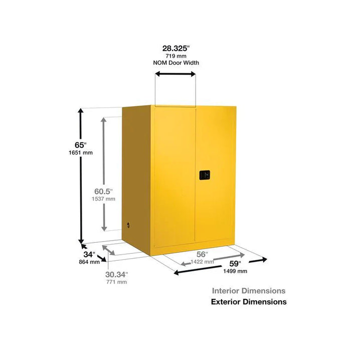 Safety Storage Cabinet 110 Gallon - Haz-Mat - 2 Self Closing Doors - 2 Vertical Drums - 1 Shelf - Yellow
