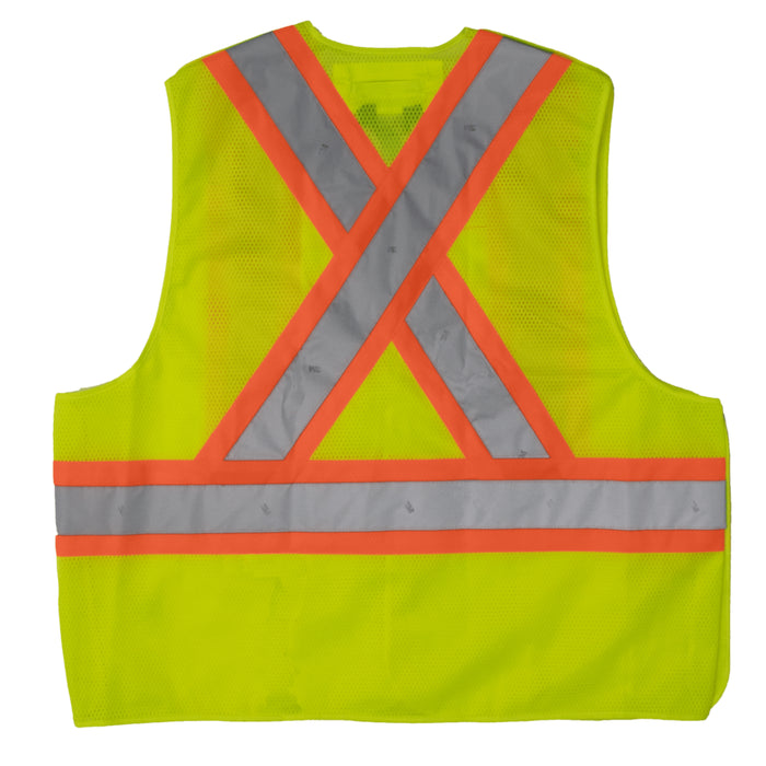 Crafted from 100% birdseye mesh, this vest combines breathability with durability, making it a comfortable choice for long hours on the job. The incorporation of reflective material with 4″ contrast backing elevates visibility, ensuring that you remain easily detectable even in low-light conditions – a crucial aspect of staying safe on a busy job site.