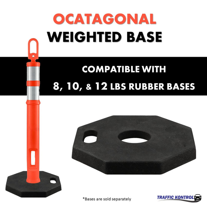 The Traffic Arch-Top Delineator is a state-of-the-art solution designed to enhance road safety and effectively guide motorists in various environments. Standing at a height of 45 inches, these delineator post bases options are available, providing flexibility for different installation requirements. Crafted from HDPE+Elastomer (High-Density Polyethylene), the Traffic Arch-Top Delineator is built to withstand the challenges of the road. It is compatible with 8 lbs, 10 lbs, 12 lbs, and 18 lbs rubber bases, offering stability and support in diverse conditions. Choose the option that suits your needs, with or without the 8 lbs and 12 lbs base. Equipped with two 4-inch 3M Prismatic Reflective Collars, this delineator post ensures high visibility and exceptional warning effects. The bright reflective sheeting catches drivers' attention, effectively drawing their focus to hazardous areas. Even when reversed in direction, the flexible design of the post allows it to catch drivers' eyes, promoting greater awareness and safety. Durability is a key feature of the Traffic Arch-Top Delineator. It can withstand high pressure, folding, and winding, ensuring its resilience even in challenging conditions. Even if the post becomes bent, it effortlessly returns to its original state, maintaining its optimal functionality and longevity. No matter the weather conditions, the Traffic Arch-Top Delineator remains reliable. It is sunproof, waterproof, and weather-resistant, ensuring consistent performance over time. The colorfastness guarantees that the reflective properties remain vibrant and compelling, maximizing visibility in all lighting conditions. With a temperature range spanning from -25°C to 60°C (-13°F to 140°F), this delineator post can withstand a wide range of climates, making it suitable for diverse geographical locations. Choose the Traffic Arch-Top Delineator for a high-quality, versatile solution that prioritizes road safety. Its exceptional visibility, durability, and weather resistance make it an invaluable tool for effectively guiding drivers and reducing accidents on the road.